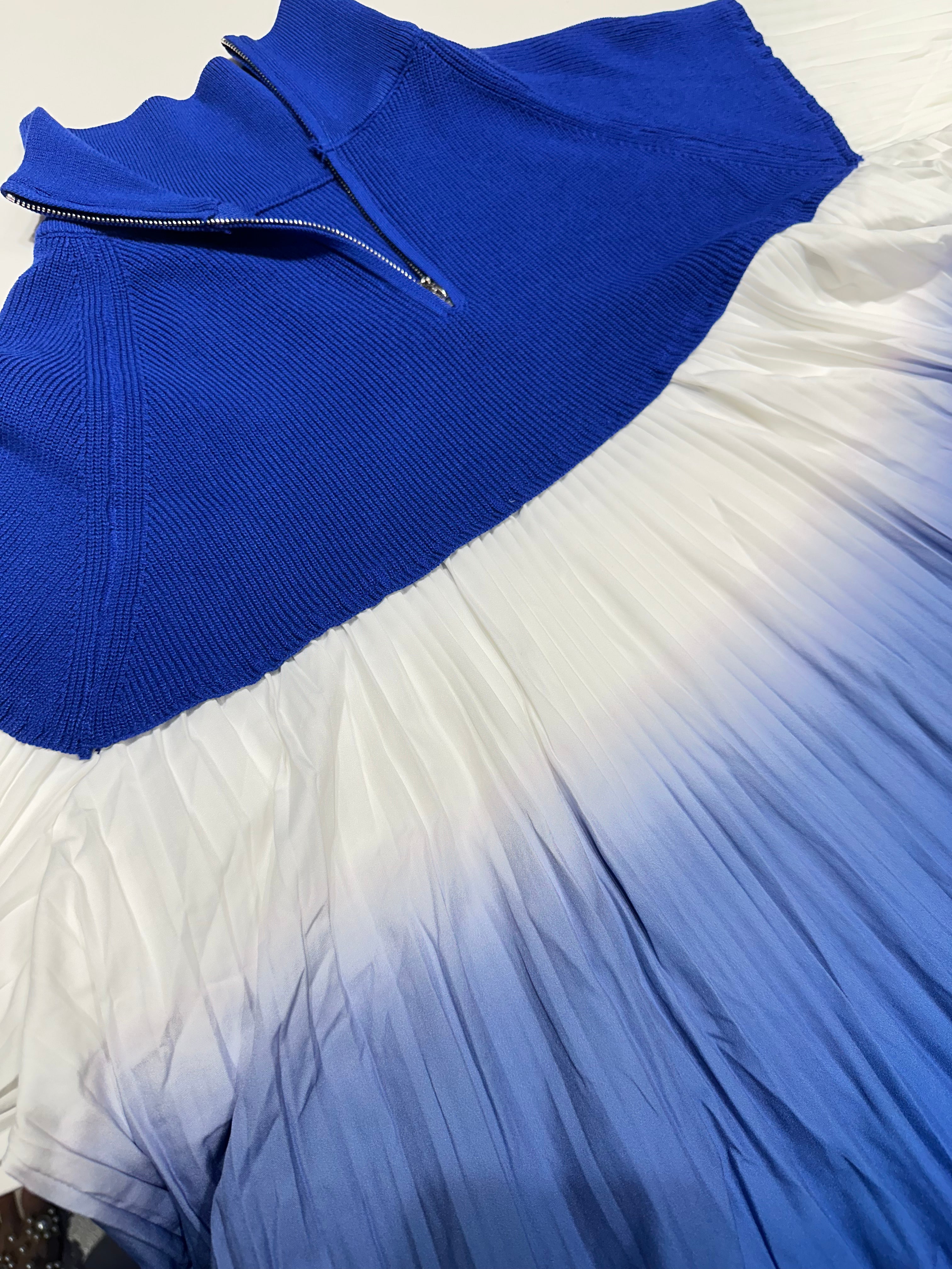 Size - Free size product ideal for M to 4xl Chic high-neck top with zip detailing, featuring pleated ombre fabric...